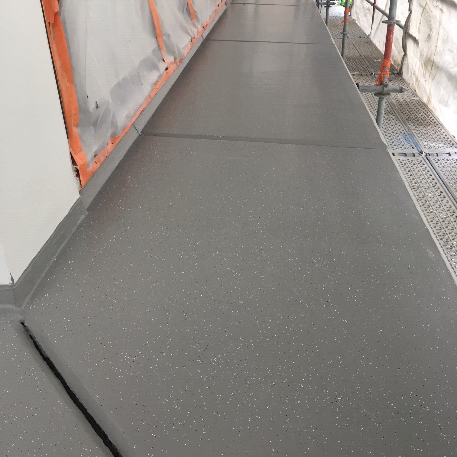- Plaatsen van PMMA-afdichtingssysteem afgewerkt met een gietvloer ingestrooit met color-chips